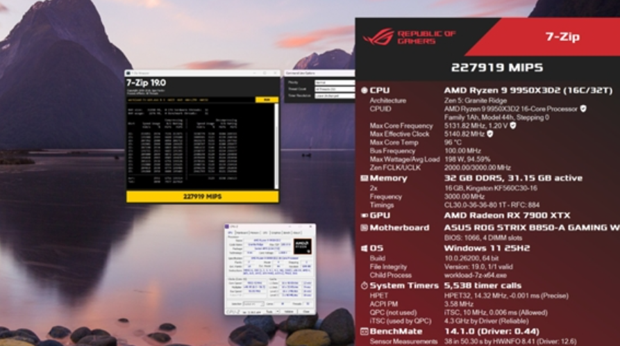 快科技4月16日消息,距离AMD锐龙9 9950X3D2正式发售还有一周,但在HWBOT已出现了该处理器的首批基准测试成绩。测试使用风冷散热器,搭配32GB DDR5内存、Radeon RX 7900 ....