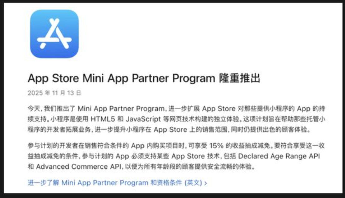 - 小游戏要变天了 苹果宣布抽成15% 微小官方已回应