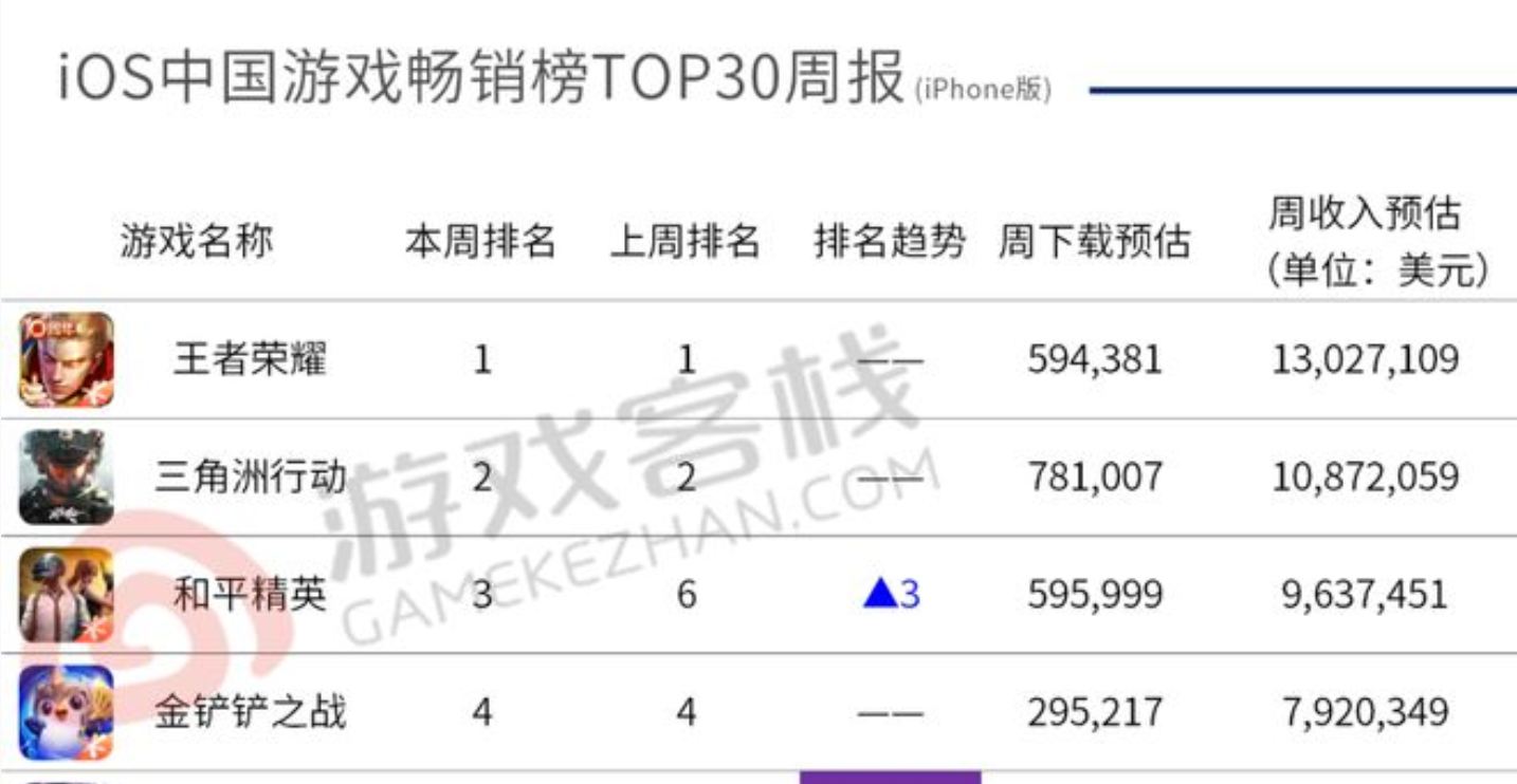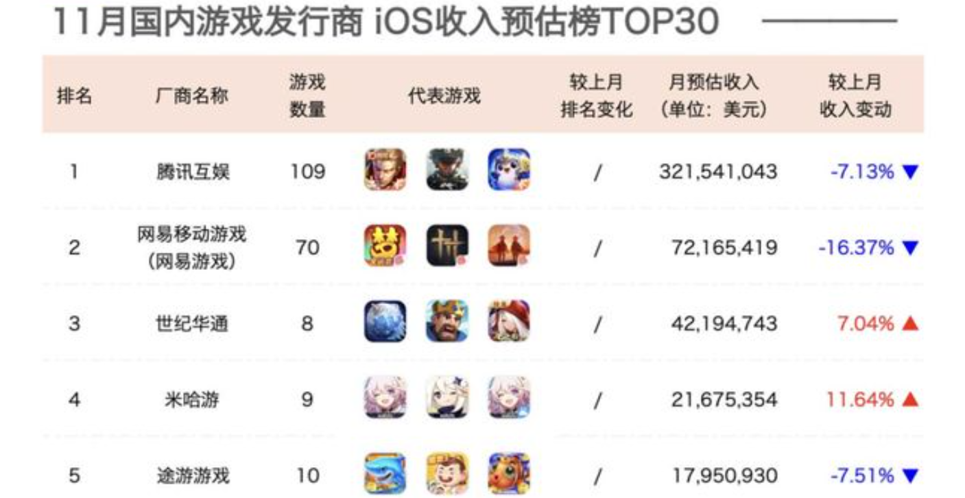 - 11月常青游戏变天,腾讯“吃鸡”让出榜二