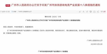2025年12月25日,广州市人民政府办公厅公布了【广州市人民政府办公厅关于印发广州市扶持游戏电竞产业发展十八条措施的通知】。十八条措施原文如下:广州市扶持游戏电竞产业发展的十八条措施第一条  ....