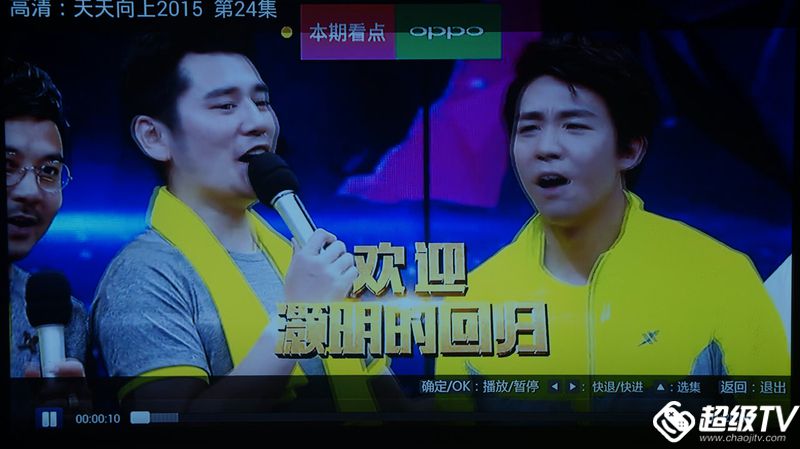 湖南卫视的王牌节目,盒子都有保持更新,画质清晰度支持720P和480P。尽管盒子连接几米外的主路由WIFI时,信号只有2-3格(隔了几堵墙),不过观看过程中并没有出现缓冲停顿,最高下载速度保持在600KB/s以上(10M电信),对于1小时左右的剧集绰绰有余,体验流畅。播放期间还可以按上方向键,方便用户选集。