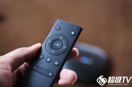 小巧的遥控器相比常见的 11 键遥控器多了一个语音功能键,点住这个键就可以对盒子进行语音操控,如搜索影片、切换频道等操作。