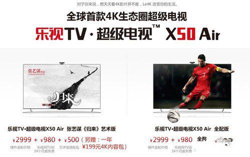 乐视TV X50 Air两个版本分别是全配版和张艺谋《归来》艺术版,全配版亦可以理解为普通版,售价为2999元;而张艺谋《归来》艺术版则可以理解为增量加强版,售价则为3499元,两个版本差价500元,那么后者贵500元对于消费者而言是否值得?继续往下看。