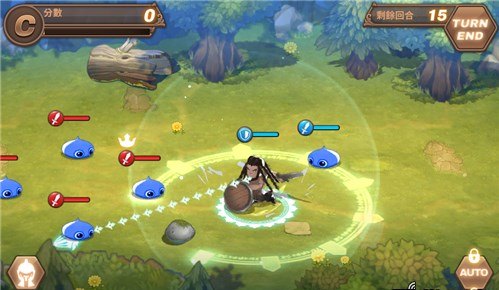 《指尖骑士》的战斗十分灵活,操作也很简单,玩家点住英雄向后拖动即可进行弹射攻击。此外,玩家在自己的回合内,可以随意操作我方队伍中的所有成员,并且没有固定的战斗顺序,玩家可以随意决定英雄的攻击顺序。每个英雄还会有自己的技能,当右边的霸气值攒满后即可释放。