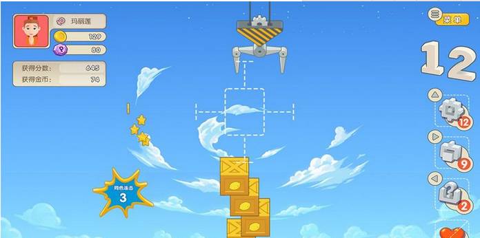 在音效方面,游戏采用了轻风格的背景音乐,特别是随着箱子堆叠高度的上升,音乐会因为场景变化而改变,海岸线的海鸥声,太空中的飞碟引擎声,都令游戏变得生动活泼。