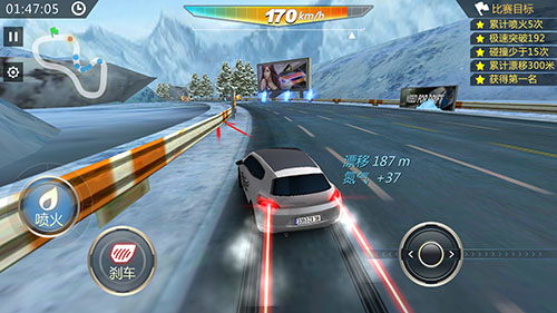 《全民漂移hotrace》一大特色就是在赛车的时候还有着丰富多彩的任务,想要获得更好的评价和星级必须要完成这些,当然一般情况下成为第一名是必备的,还会有诸如加速几次,漂移多少等等任务。这让一场比赛不仅有了单纯竞速的激烈对抗性,更让游戏增添了几分战略要素,何时何地完成何种任务是玩家必须考虑的要素,当然这也让游戏的乐趣翻倍增长,对一些竞速不太感冒的玩家或许也有了一定的吸引力。