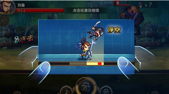 《炫斗三国志》虽然标榜自己是一款动作游戏,但却破弃掉了移动功能,是的,你没看错!在战斗场景中以人物为中心平均分为两个区域,会有杂兵从两面袭来,玩家无需移动只需要使用手势便可攻击,当操纵远程角色时更像是在玩塔防游戏。
