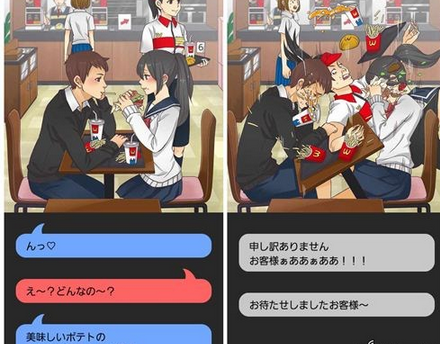 在剧情过后并没有马上进入触屏界面,而是先让玩家体会一下,如果没有受到制裁,愚蠢的异性恋会在大庭广众之下如何肆无忌惮的秀恩爱,将单身狗的怒火升至最高点,然后再进入审判时间。