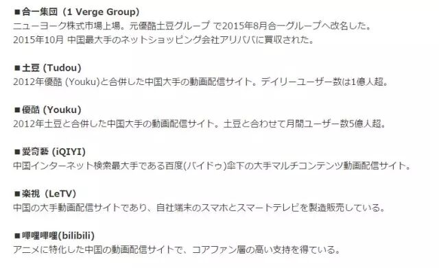 ③除了动画制作以外,东京电视台2016年力推动画版权新政,不再与优土独家合作,而增加了爱奇艺、乐视、哔哩哔哩,一共与国内五家平台进行网络版权合作。