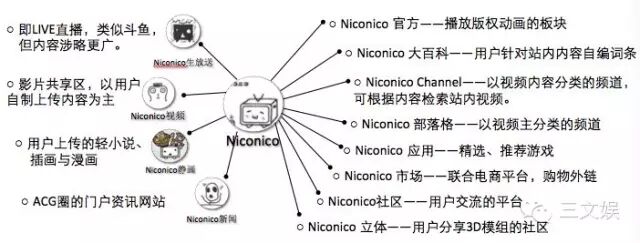 图右标红的是日本电视放送网NTV和日本电报电话公司NTT,NTV与角川一样手握海量IP和节目版权,NTT则是日本最大的电信运营商,同时投资了非常多的互联网公司。在2013年11月,Dwango还获得了任天堂十几亿日元投资,它用诸如此类的资本合作,为Niconico很好地应对了内容来源的问题。(需要提及的是,运营商NTT为Niconico的SP业务收入做了很大的贡献,但这与“点数”Points业务都有着鲜明的日本互联网特征,我们这里不作展开)