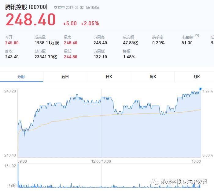 5月2日,腾讯股价连续第九天刷新历史纪录,早盘涨1.56%,最高触及247.8港元;市值一举突破3000亿美元,成为目前中国唯一一家市值破3000亿美元的互联网公司。