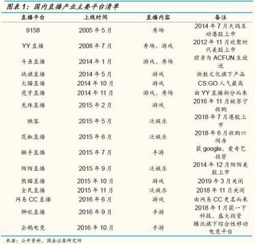 2004年,傅政军借鉴韩国CNC、CClub的视频聊天室,在国内推出视频交友网站“久久情缘”,2005年5月,久久情缘改名9158.com聚乐网,直播产业悄然发迹。当时,“网络直播”还是秀场直播的代名词,游戏直播这个概念尚未诞生。转眼之间,十五年过去了,YY、陌陌、天鸽(9158)、映客、虎牙先后上市,斗鱼IPO也接近告成。在这十五年中,直播产业完成了沧海桑田之变,游戏直播更是从一无所有走到了行业主流。