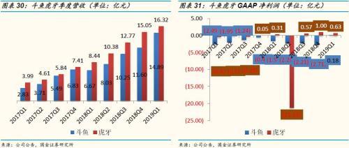虎牙(HUYA)于2018年5月 率先登录美国资本市场,成为游戏直播第一股,2019Q1营业收入16.32亿元,净利润6346万元,MAU和用户付费率稳步提升。我们认为,虎牙的优势在于公会体系、腰部主播、来自母公司欢聚时代的支持,以及历史上较高的管理效率。