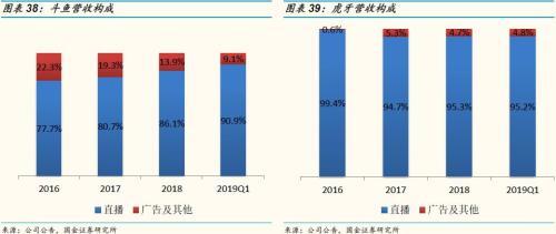 尽管总用户规模不如斗鱼,但虎牙的付费率更高。2018年,虎牙的年度付费率为4%,斗鱼的年度付费率仅为2.8%。2019Q1,虎牙的季度付费率环比提升0.1pct,达到4.4%;斗鱼的季度付费率为3.8%,环比大增1pct,同比增长0.9pct。现在,斗鱼、虎牙两家的季度付费率均处于历史最高水平,我们估计在未来几个季度还会连创新高。