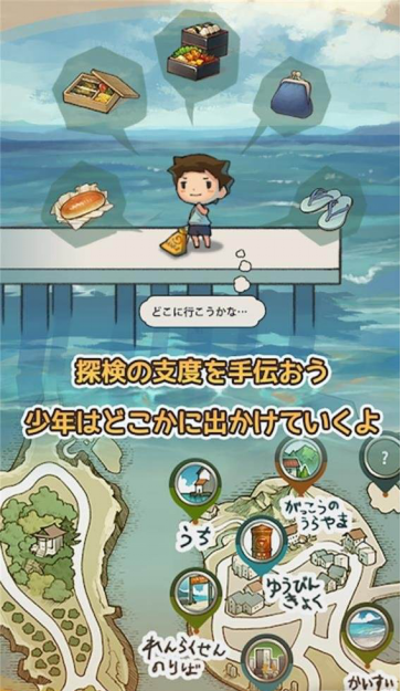 飒介在暑假独自来到故乡小岛,将要和并不熟悉的叔叔、和善的婶婶和严厉的奶奶一起生活。这些人只在很小的时候见过,飒介相处起来非常拘谨,再加上城市和乡村之间的生活方式和习惯不同,飒介也不得不进行适应和改变。玩家在游戏中需要为飒介准备好食物等出门物品,然后飒介回家时会带来故事和纪念品。