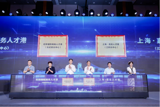 “虹桥国际商务人才港”和“嘉定人才港江桥分中心”揭牌仪式