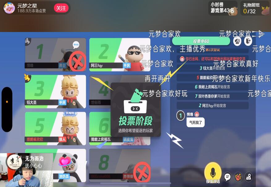 (图:直播间里的玩家一起听coke舌灿莲花忽悠大家投票)