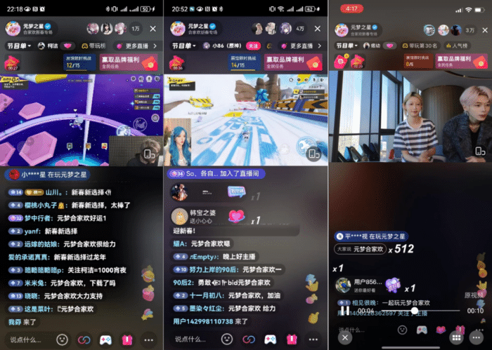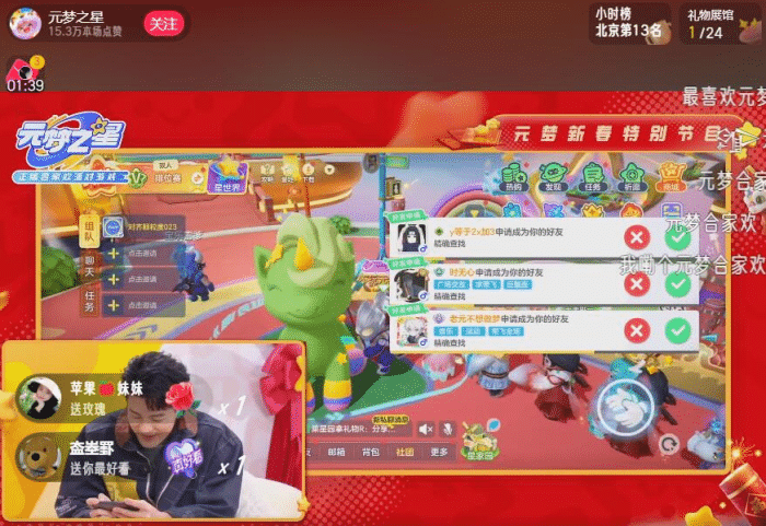 在抖音的这次“接力直播”之前,《元梦之星》已经在2月2日开启了新春版本,将集市、灯会、烟花、聚会、祈福、领取红包福袋这些有着传统新年元素汇集一堂,给玩家们持续近一个月的“年味”体验。