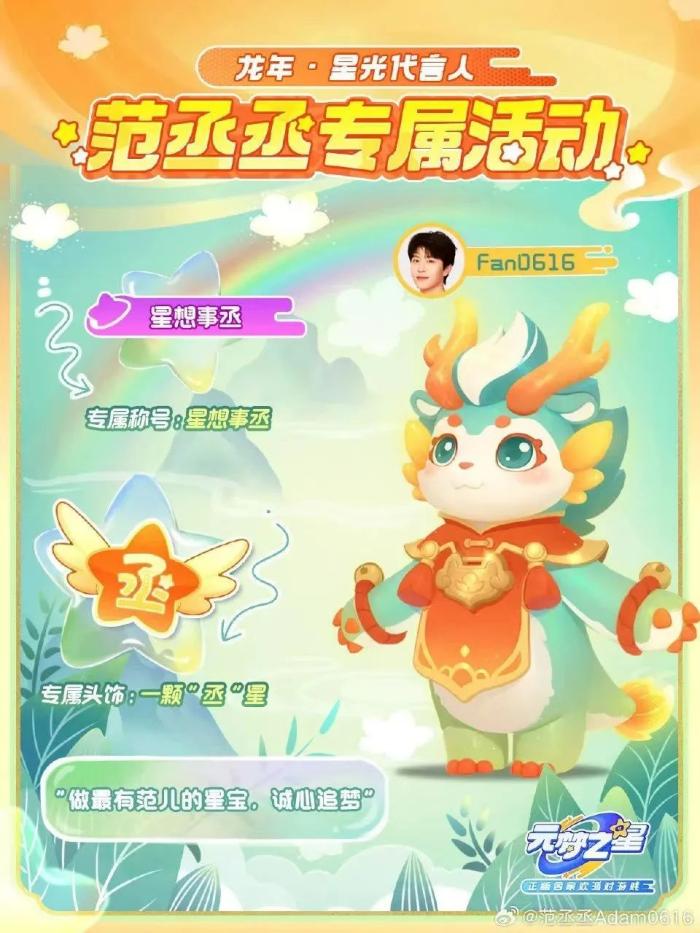 而范丞丞的人气可不仅于此,他和《元梦之星》搭配起来可以说是妥妥的流量密码。在范丞丞宣布成为龙年·星光代言人的时候,官方给其设置的专属称号“星想事丞”就一度上了微博热搜。