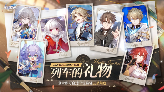 《崩坏:星穹铁道》2.7版本「在第八日启程」于12月4日开启,新五星限定UP角色星期日、忘归人开放抽取;在全新星球启程之前,开拓者将与匹诺康尼这片繁华梦境作最后的道别;同时,「开拓者的房间」将正式上线实装,还有自选常驻五星等福利、活动和优化内容等开拓者前往体验!