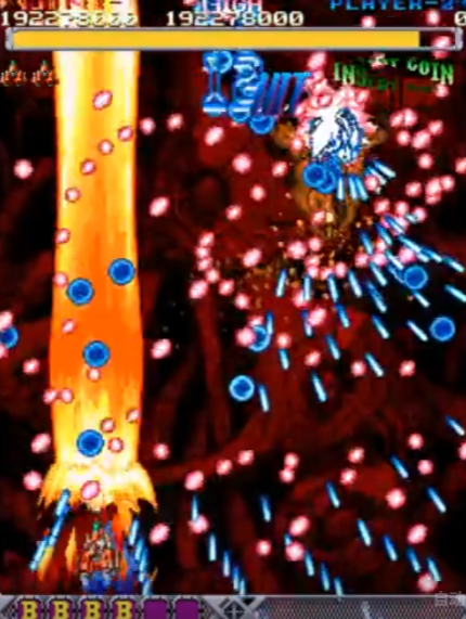 说到弹幕游戏,大多数人率先联想到的,大概都是“弹幕射击”。在最早的飞行射击游戏中,没有复杂的养成线,玩家的目标就是对皮糙肉厚的boss奋勇刮痧,而策划的任务就是给这个玩家使绊子,用弹雨攻势来上难度。当弹雨对屏幕的覆盖达到几乎没有容错率的时候,顶尖的弹幕射击游戏也就诞生了。从古早的《首领蜂》系列,到把二创玩出花的东方系列,再到手游时代里复刻+创新的各种空战玩法,玩家对弹幕射击可谓几十年如一日地保持着热情。