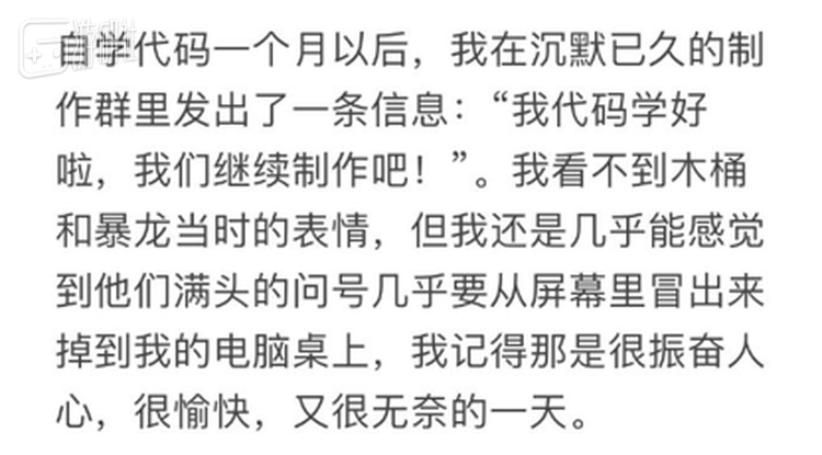 “其实原先有一位主程序,坚持了一年左右的时间”,在18年的制作团队见面会上,茄子一只手拿着话筒,另一只手里搓着桌子上的彩色橡皮泥。“当时我们都处在一个吃土的状态,发不出工资,当时他走也是一个理所当然的选择。”螺舟到场的四个人都显得青涩内向,茄子算是其中健谈的。