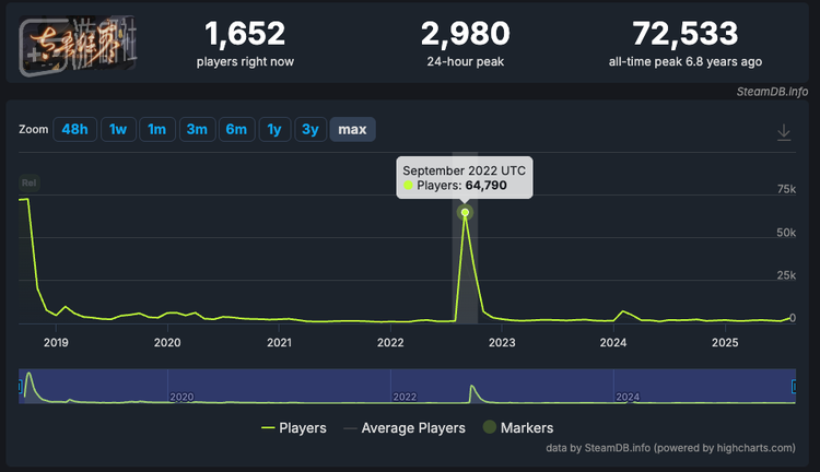 闭关两年,太吾绘卷新版本即将上线,让当时很多玩家喜不自胜,在屏幕前等着游戏更新。当晚游戏的峰值在线人数突破了6万4千人,迎来了发售4年之后的又一个小高峰。