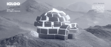 另一个,则是为链上社区Igloo制作的官网。当我们的光标移动时,构成雪屋的冰砖随之聚合或者分离。参数化的粒子、波形、线条,将抽象的企业概念可视化,无疑让设计在视觉呈现上更有感染力和沉浸感。