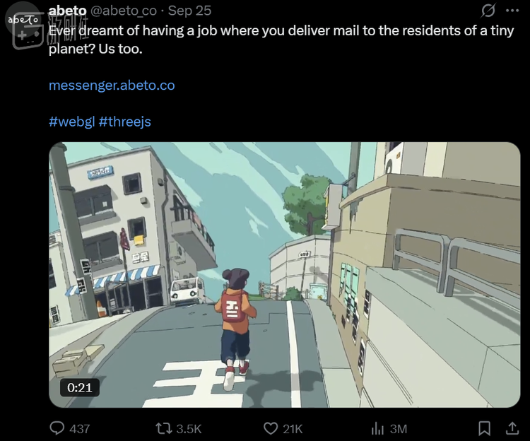 这家工作室名叫Abeto,前几天他们发布了一条推文,附带一条游戏视频,文中只简单地写了一句话:“你有没有梦想过拥有一份,可以给一个小星球上居民送邮件的工作?我们也有。”