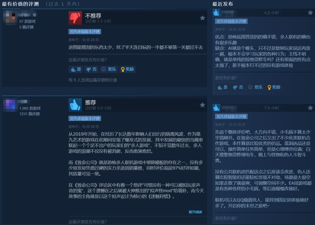 基于恐怖题材、合作PvE、社交驱动以及猎奇心理等,游戏吸引了一批玩家关注。同时,得益于相对更新颖的玩法,该作也从其他有重叠用户的产品中分流走一部分受众群体。