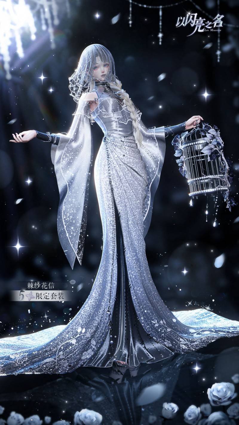 与涅槃咏叹六星时装的磅礴形成互补,五星套装棘纱花信对物哀美学的精准演绎则成为了另一批玩家的“心头好”。这套全新的时装以“枯枝、鸟笼、繁花”为核心三重意象,构建出禁锢中的绽放这一极具张力的视觉叙事。《以闪亮之名》将象征束缚的枯枝与代表希望的繁花编织共生,把承载宿命的鸟笼置于贴近心脏的左手,用破碎感与顽强感塑造出一位不被定义的新娘。她没有传统新娘的明媚欢悦,却带着在困境中坚守自我的沉静力量,这种美不张扬却更具穿透力,诠释了女性在束缚中依然能滋养内心、绽放光芒的柔韧特质。两套时装一刚一柔、一炽烈一沉静,分别对应着女性力量的两种极致表达——既有破釜沉舟的勇气,亦有于无声处坚守的韧性,共同构成了完整的女性精神图谱。