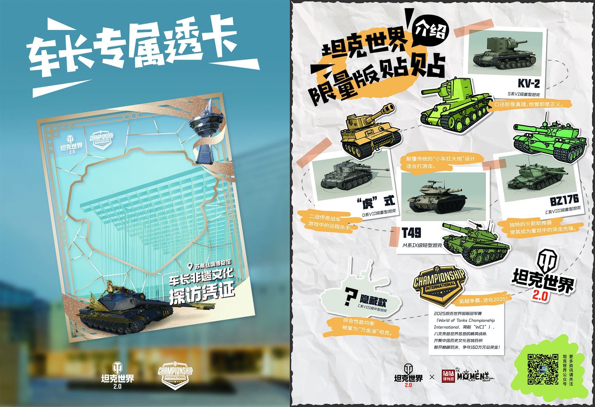 这八面凝聚着匠心与祝福的苏绣战旗,不仅将在WCI赛事现场作为战队的荣耀象征亮相,激励选手们奋勇拼搏,赛后还将被送往苏州丝绸博物馆进行为期一个月的公开展览。《坦克世界》玩家均可前往探访,感受非遗文化的无限魅力。参与战旗拍照打卡活动,还能获赠坦克世界定制版贴贴套装,将刺绣版经典坦克带回家!