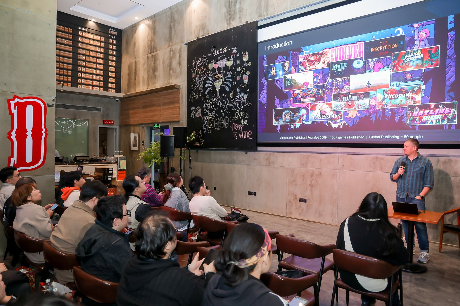 2025年11月,上海 —— 近日,鹰角网络旗下游戏投资品牌“开拓芯”携手全球知名独立游戏发行商 Devolver Digital,在上海举办了一场闭门交流活动,汇聚了来自全球各地的70余位优秀独立游戏从业者。通过干货分享、深度问答、游戏试玩等环节,活动为开发者们搭建起中外独立游戏领域的沟通桥梁,为国产独立游戏的全球化发展带来了新可能。