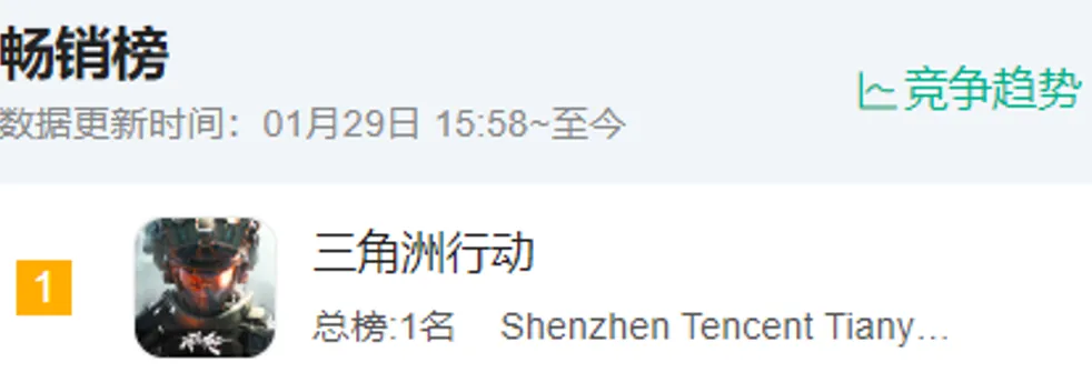 支撑点大概是它的进步太明显了。回看历史,虽然三角洲只有两次版更冲上榜首,但就发生在之前的S6、S7,且一连六七天霸榜,平常即便没什么大动静,也基本稳扎在榜单前五。而且前不久三角洲还公布了最新日活数据,已冲至4100万。