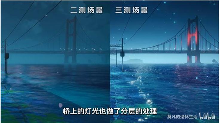 让我们先看几张B站up主“莫凡的退休生活”做的二测与三测肉眼可见的画面对比。
