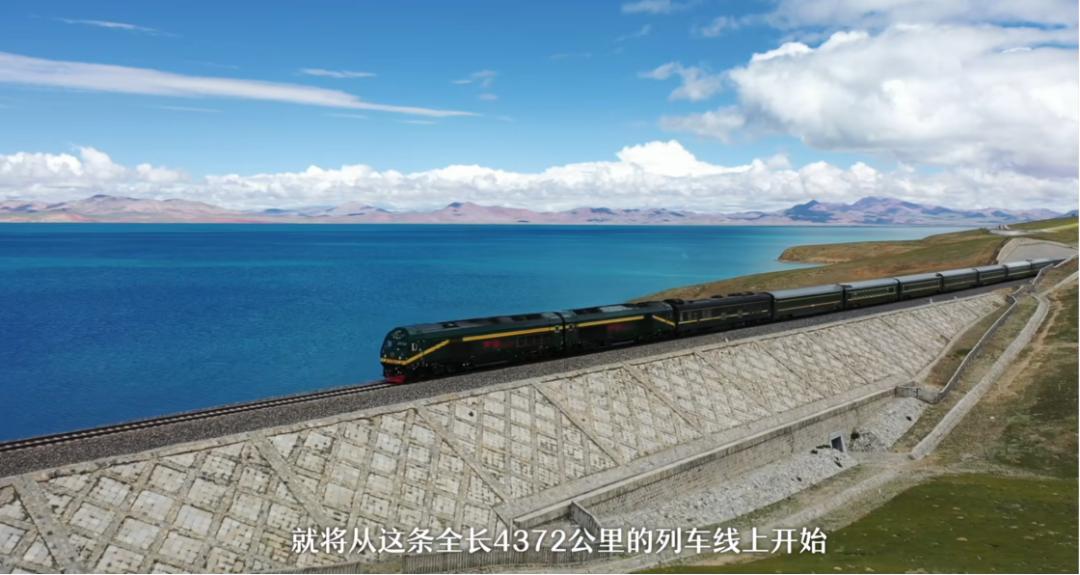 在公益宣传片的开头,《齐乐绒绒大冒险》中的列车从宇宙中俯视自己的下一站,准备去那里开启收集笑容的新任务,随后镜头一转,在动画风格的蓝天绿地碧海之畔,一辆有蒸汽机头的列车飞快驶来,随着距离拉近,整个画面也转为现实风格,列车变成了我们熟悉的绿皮车造型,字幕显示这就是行驶在青藏铁路上,从拉萨开往上海的Z166次列车。