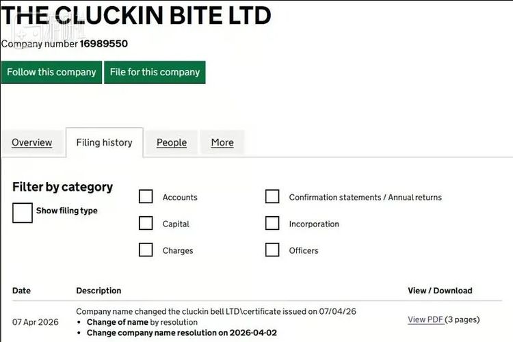 根据英国公司注册处的信息,这家店已经从The Cluckin' Bell改名成差别不大的The Cluckin' Bite,改了名、但不多。虽然改了门头,但看起来也依然决心要开张。