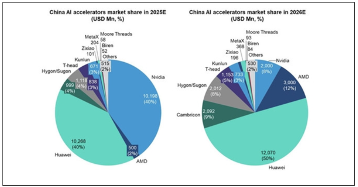 中国AI芯片市场迎巨变:英伟达2026年将仅占8%