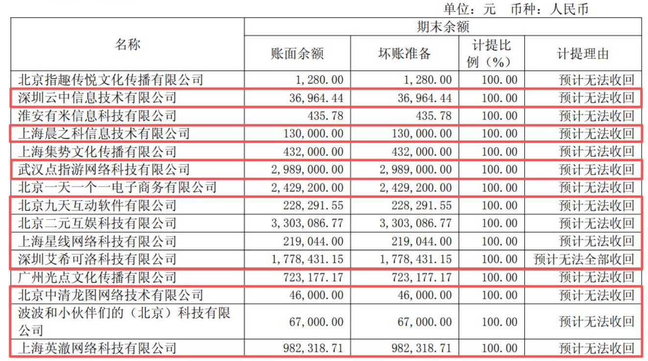 今日(3月20日),上市公司国旅联合在它的2025年财报中披露了26家拖欠款项并要做坏账准备的客户,其中有10家是游戏公司——中清龙图、晨之科、二元互娱、星线网络、英澈网络、波波和小伙伴们、艾希可洛、 ....