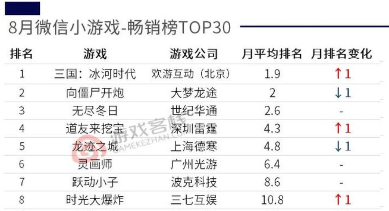8月小游戏百强 微信、抖音小游戏六大榜单全析